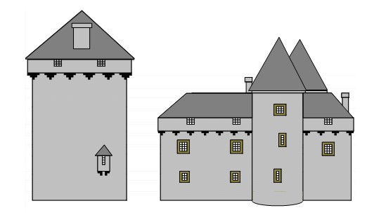 Le donjon date du XIII° siècle. Il est bâti sur un plan défensif fréquemment utilisé du XI° au XV° siècle, jusqu’à l’apparition de l’artillerie qui a généralisé la forme ronde des tours.